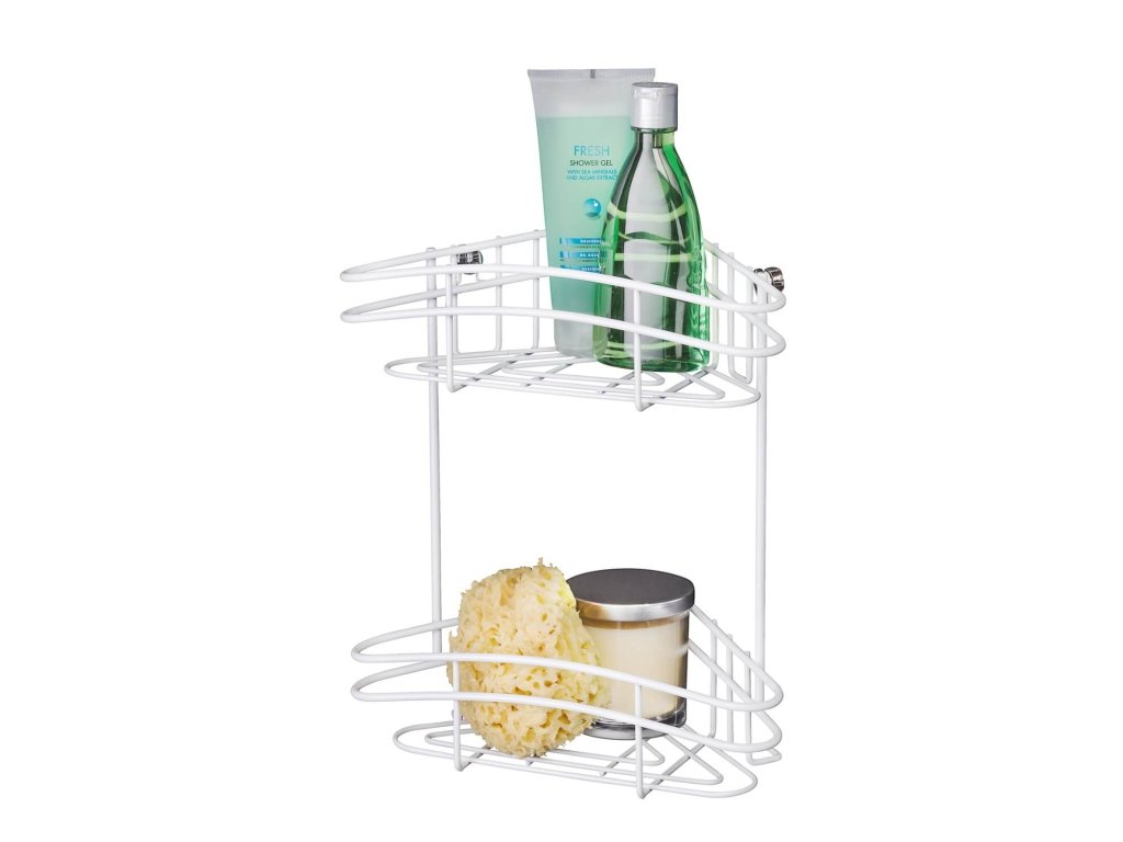 Oszczędzająca miejsce półka narożna Classic Plus z dwoma poziomami ze stali lakierowanej oferuje optymalne wykorzystanie przestrzeni do przechowywania w łazience.