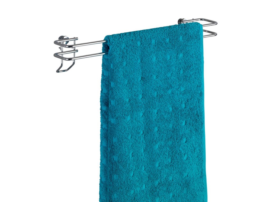 Praktyczny uchwyt na ręcznik wykonany jest z błyszczącego chromu. Uchwyt na ręczniki składa się z długiego drążka do zawieszania, na którym zmieszczą się dwa ręczniki do rąk lub jeden ręcznik kąpielowy. Dzięki temu każdy ręcznik może odpowiednio wyschnąć.