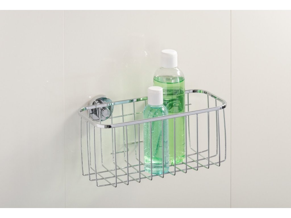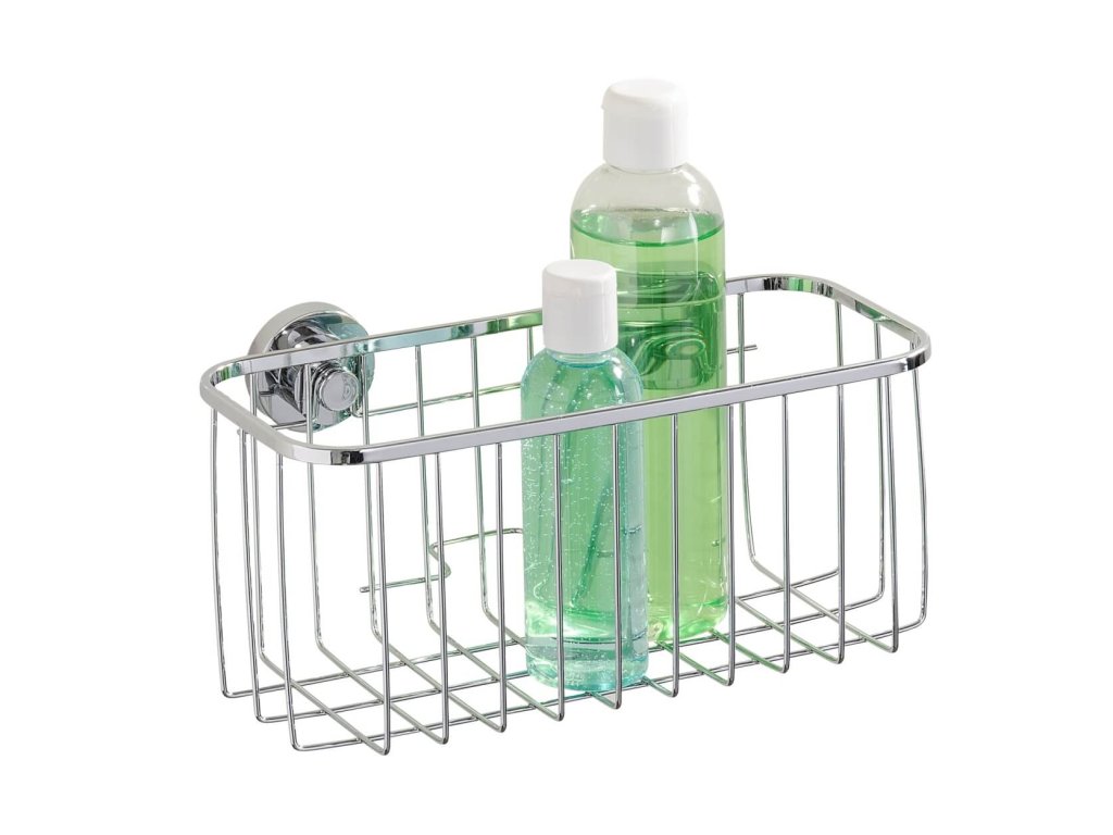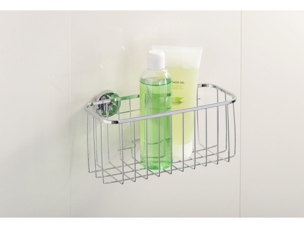 - FUNKCJONALNOŚĆ - kosz do przechowywania akcesoriów łazienkowych i prysznicowych, z nierdzewnej, błyszczącej stali.