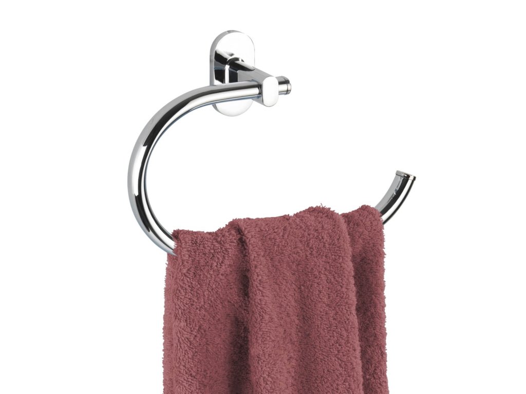 - FUNKCJONALNOŚĆ - otwarty uchwyt na ręcznik z chromowanego cynku odpornego na rdzę, o okrągłym kształcie.