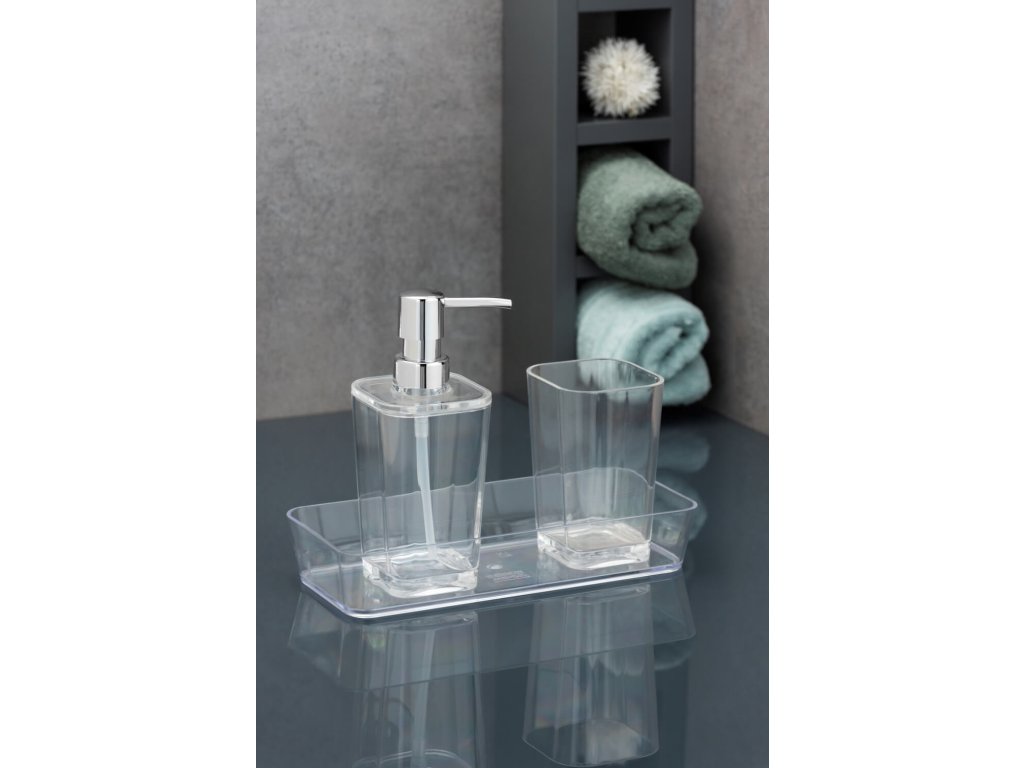 Przezroczysty dozownik mydła z serii Candy Transparent można indywidualnie napełnić do 330 ml mydła w płynie lub kremu do mycia. Wymagana ilość mydła lub płynu do mycia naczyń jest dozowana poprzez delikatne naciśnięcie przycisku dozującego.