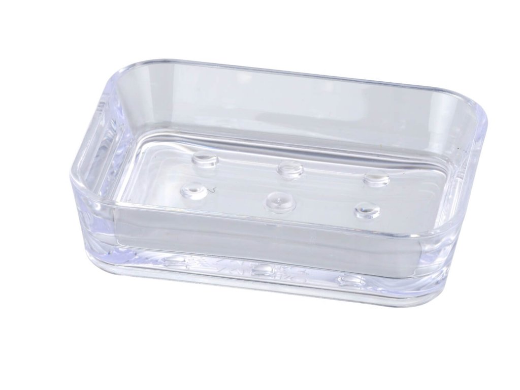 Ozdobna przezroczysta mydelniczka jest idealna do przechowywania mydła ręcznego. Cała ciecz zostanie zatrzymana, a mydło pozostanie reprezentacyjne i łatwo dostępne w atrakcyjnej miseczce.