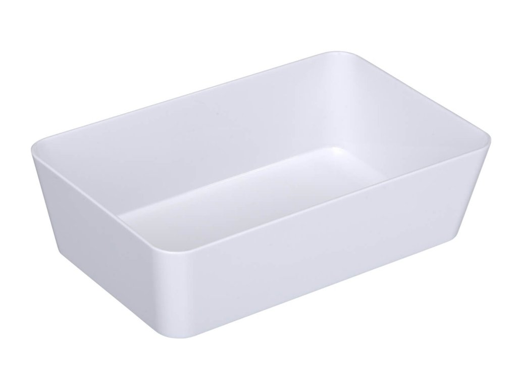 Dekoracyjny biały schowek sprawia, że wszystko, co jest potrzebne do codziennej rutyny w łazience, jest w zasięgu ręki. Duża taca oferuje mnóstwo kompaktowej przestrzeni do przechowywania.