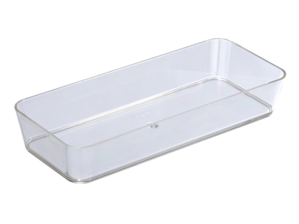 Dekoracyjny, przezroczysty schowek sprawia, że wszystko, co jest potrzebne do codziennej rutyny w łazience, jest w zasięgu ręki. Duża taca oferuje mnóstwo kompaktowej przestrzeni do przechowywania.