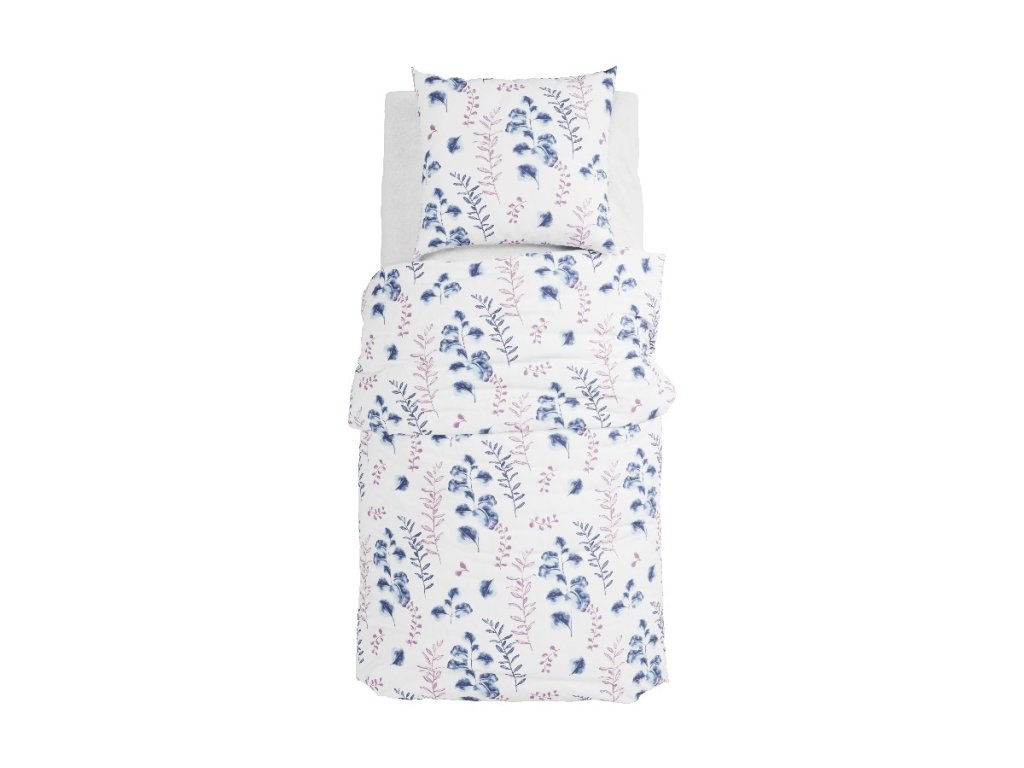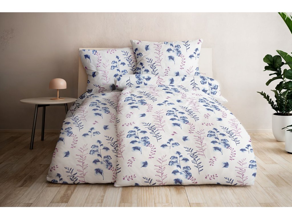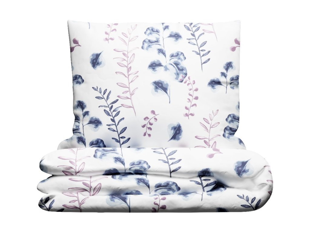 Dwustronnie pościel z nadrukiem EUCALIPTA oferuje pełen wachlarz roślin. Niebieskie liście leczniczego eukaliptusa przypominają akwarelę, którą coraz częściej można spotkać na tekstyliach domowych. Akwarelę na białym tle uzupełniają gałązki w modnym odcieniu popielu i bzu. Ponadczasowy design zmieni Twoją sypialnię w przytulne miejsce, które zaprasza do krainy snów.