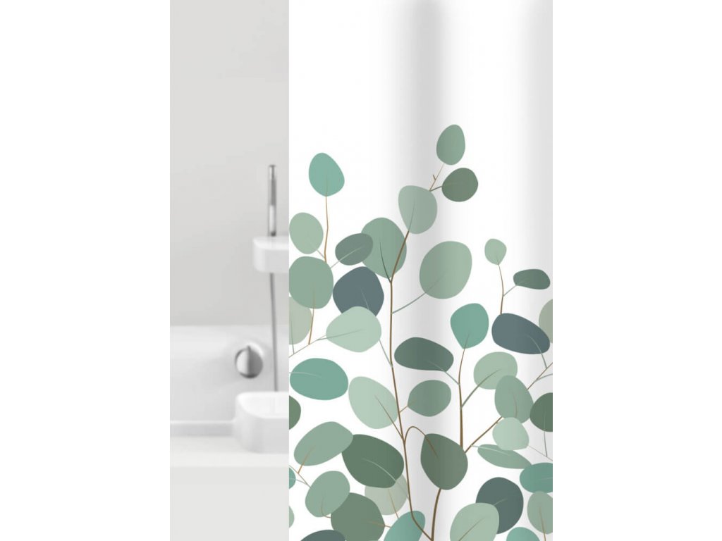 FLORAL - Zasłona prysznicowa 180x200 cm, biało-zielona