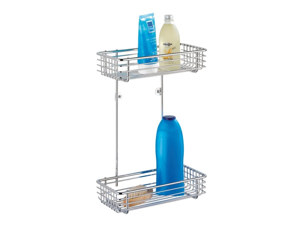 Ekskluzywna półka uniwersalna Milano w błyszczącym chromie z 2 półkami oferuje mnóstwo miejsca dla małych łazienek.