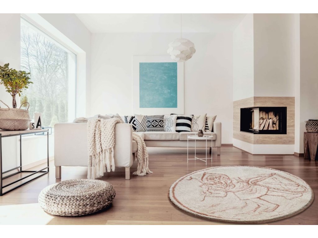 PERMONIK - Dywanik okrągły 80 cm, beżowy