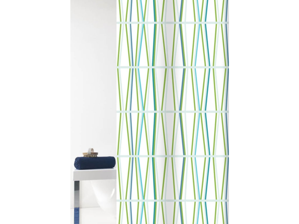 TENURA - Zasłona prysznicowa 180x200 cm, biało-zielona